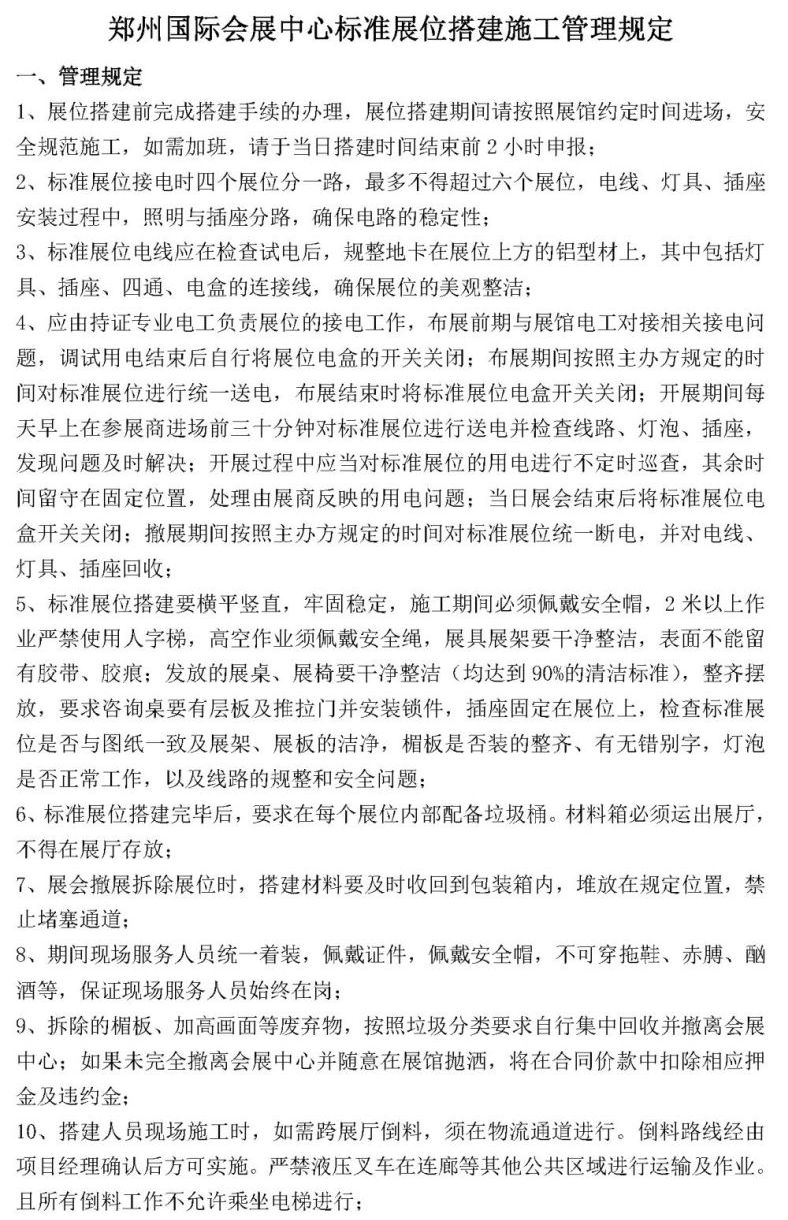 鄭州國際會展中心標準展位搭建施工管理規(guī)定