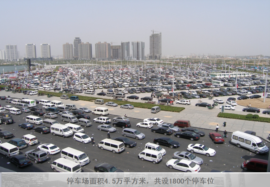 4.5萬平方米室外停車場,共設(shè)1800個停車位; 旋轉(zhuǎn)物流通道實現(xiàn)人流車流分流。